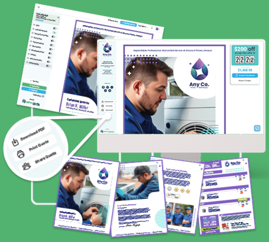 We work with all types of field services to offer custom quote templates and powerful quoting software for your company at affordable prices. Our expert home service marketing team also offers design services for sales materials, websites, brand identity, and more. Contact us today for more information.