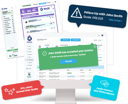 EZProQuotes allows your customers to make deposits and payments right within the quote and automatically creates receipts and invoices for ultimate convenience. Plus, you’ll get paid the next day and save money on credit card processing fees!