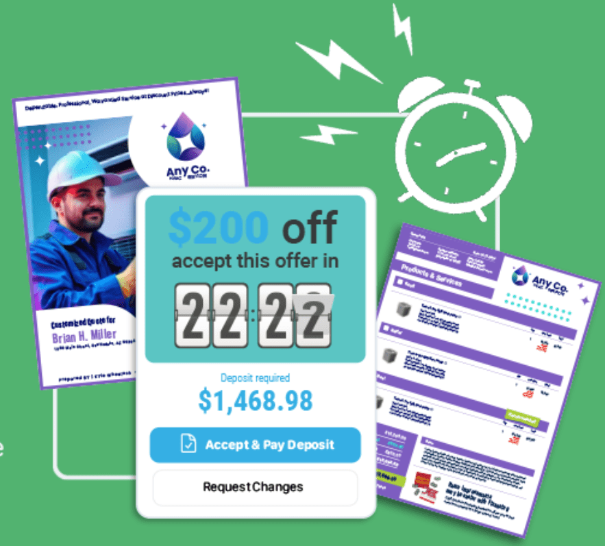 Look like a million bucks with a powerful, custom designed, scrolling quote viewer and customer portal. Includes, multi-page proposals, Fast Track Timer, clickable table of contents, plus download, print, and share buttons.